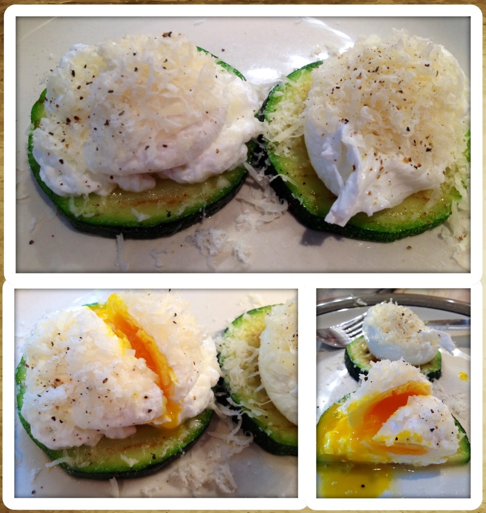 I love poached eggs. And I love Zucchini. So, I put the poached eggs on top of the grilled Zucchini with some freshly grated parm and it really is remarkable!