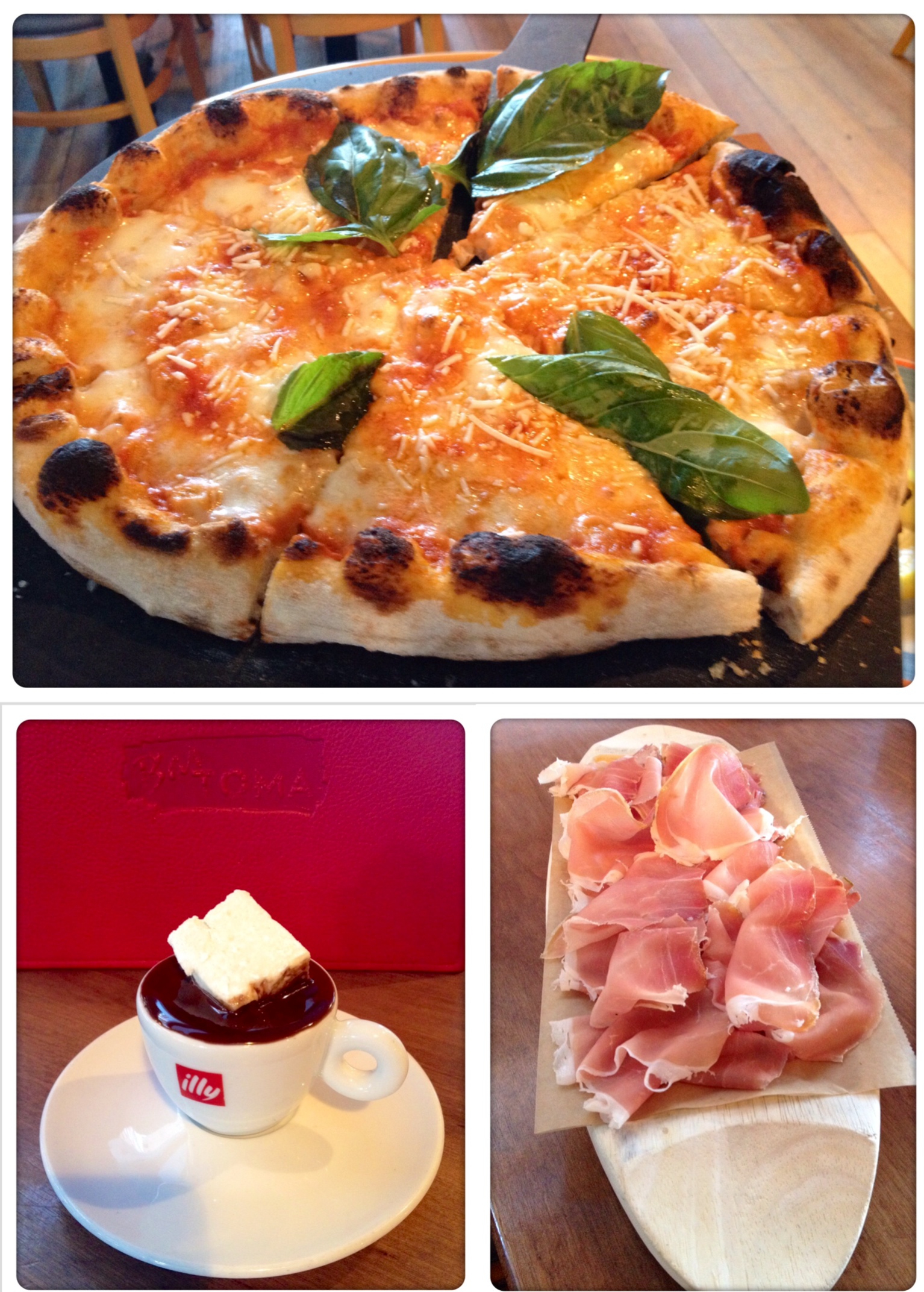 It was national hot chocolate day on my visit and the manager at Bar Toma so sweetly shared a sample of their hot liquid chocolate and it was amazing. The prosciutto is a fabulous appetizer and I highly recommend starting with this, but saving some because you are going to want to add some to your pizza.