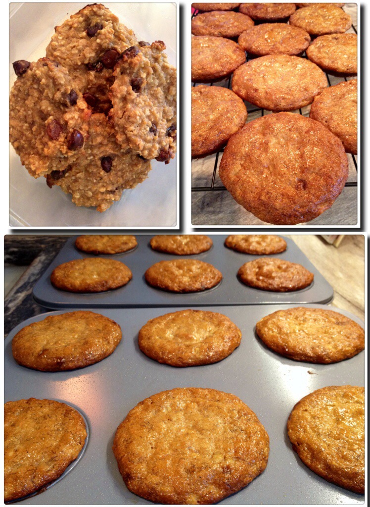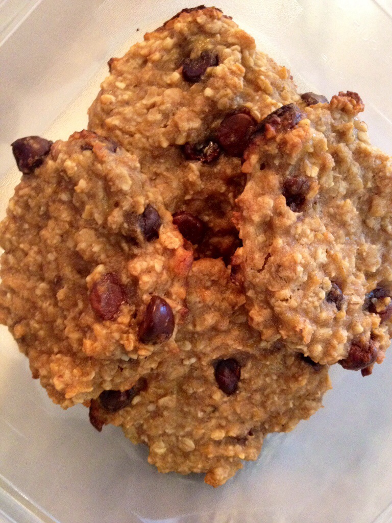 Thank you to Pinterest for bringing the Peanut Butter Banana Oat Breakfast Cookies with chocolate chips recipe to me. These are hearty, moist, nutritious and delicious as they are high in protein but no flour or processed sugar. The ingredients are so simple: bananas, peanut butter, applesauce, vanilla, quick oatmeal, nuts, and optional chocolate chips. But, I did double the amount of chocolate chips and replaced the whey powder with an egg white. I love the smoothness the peanut butter adds. These are great for a breaky on the go but also as a snack, anytime. It was hard to test only one while they were hot out of the oven.