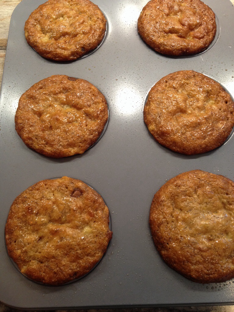 Banana bread is my go to when I have lots of bananas in the freezer, but this time I wanted to find a recipe with reduced sugar and also use my muffin top tins. So, I found this banana bread recipe but added 1/2 cup of chocolate chips and divided the batter into 12 muffin tops and baked for 15mins at 350. They turned out just fabulous. Lighter than the cookies too! Tip: cut the muffin in half lengthwise and spread peanut butter in the middle. It’s a banana muffin peanut butter sandwich! You could also add banana slices with the peanut butter.