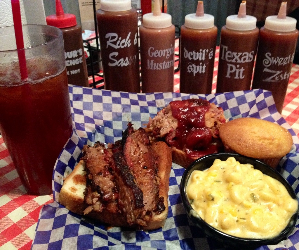 The lunch specials are a great deal, I got the 2 meat platter and there was by far enough tasty chopped pork and beef brisket. The cornbread muffin was amazing… I crumbled up the muffin button all over the meat to ensure a perfect bite every time. The sweet tea is a must refreshment.
