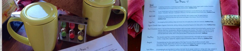 A lovely tea menu at the naked sprout, plus a very cute “perfect tea” timer comes to your table as well.