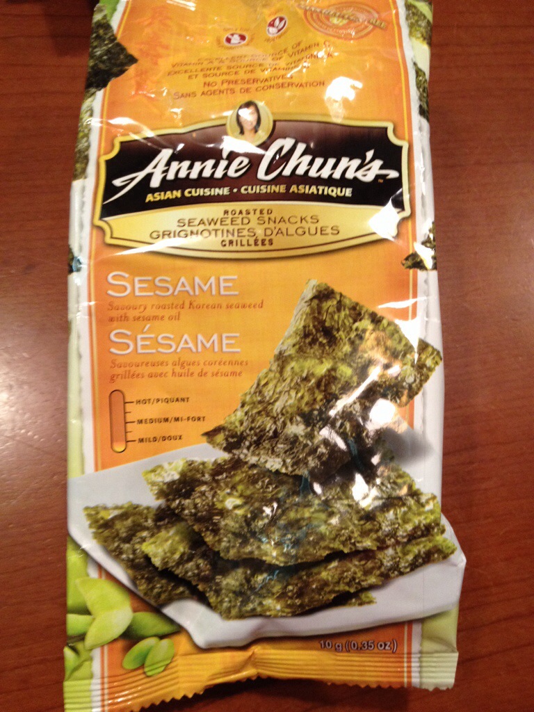 I love these roasted seaweed snacks. I was so happy to find them at Fortinos, the local grocery store. And even happier to learn they are also at Costco! They help you hit that salty, thin, crunchy snacking craving, yet you are being healthy. Win, win!
