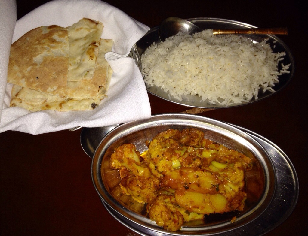 Kumar’s may appear to be a small, dark restaurant in a tiny strip mall on Guelph Line, just south of New Street, but its got big taste! The wonderful fragrance of indian spices fills your nose and tickles your tastebuds when you enter Kumar’s. Today I had one of the most fabulous dishes: Allo Gobi with rice and garlic nan. The Potatoes and cauliflower were soft but still had a good intact texture. The mix of Indian spices was superb and I loved the little hint of sweetness in the tomato/onion gravy sauce. The garlic nan is thicker, breadier and drier then I’m use to but it holds its own and goes so well topped with the rice, sauce and veggies. I was dipping that nan in any little bit of sauce I found.