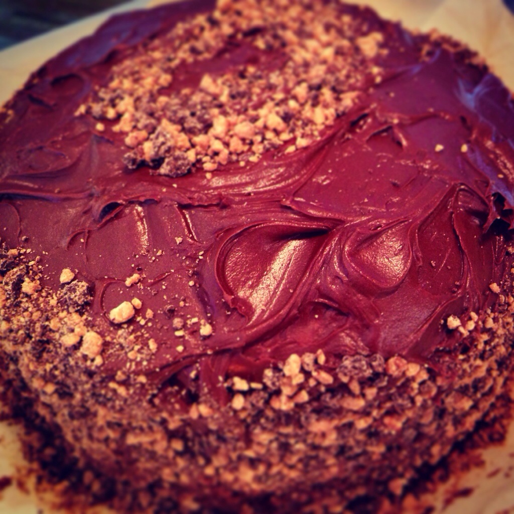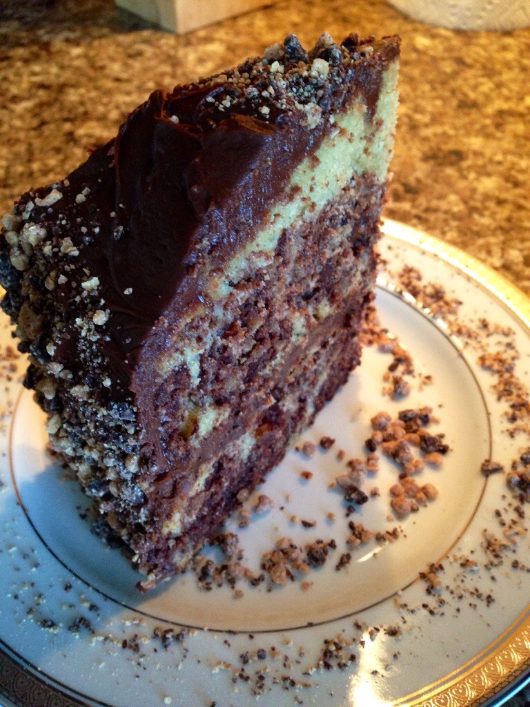 So this year I made a layered peanut butter and chocolate marble cake topped with chopped Reese peanut butter chips and dark chocolate chips. I blended these two recipes together (Peanut Butter Frosted Chocolate & marble) to make a hybrid of my own.