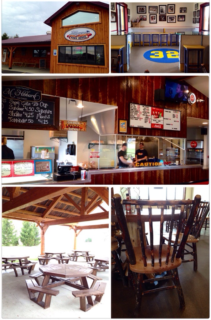 I really like the cosy log cabin decor as well as the picnic tables out back. Inside, I love the Penalty box and that the doors are from the old Aud! The homemade wooden tables and chairs are a very charming and homey touch.