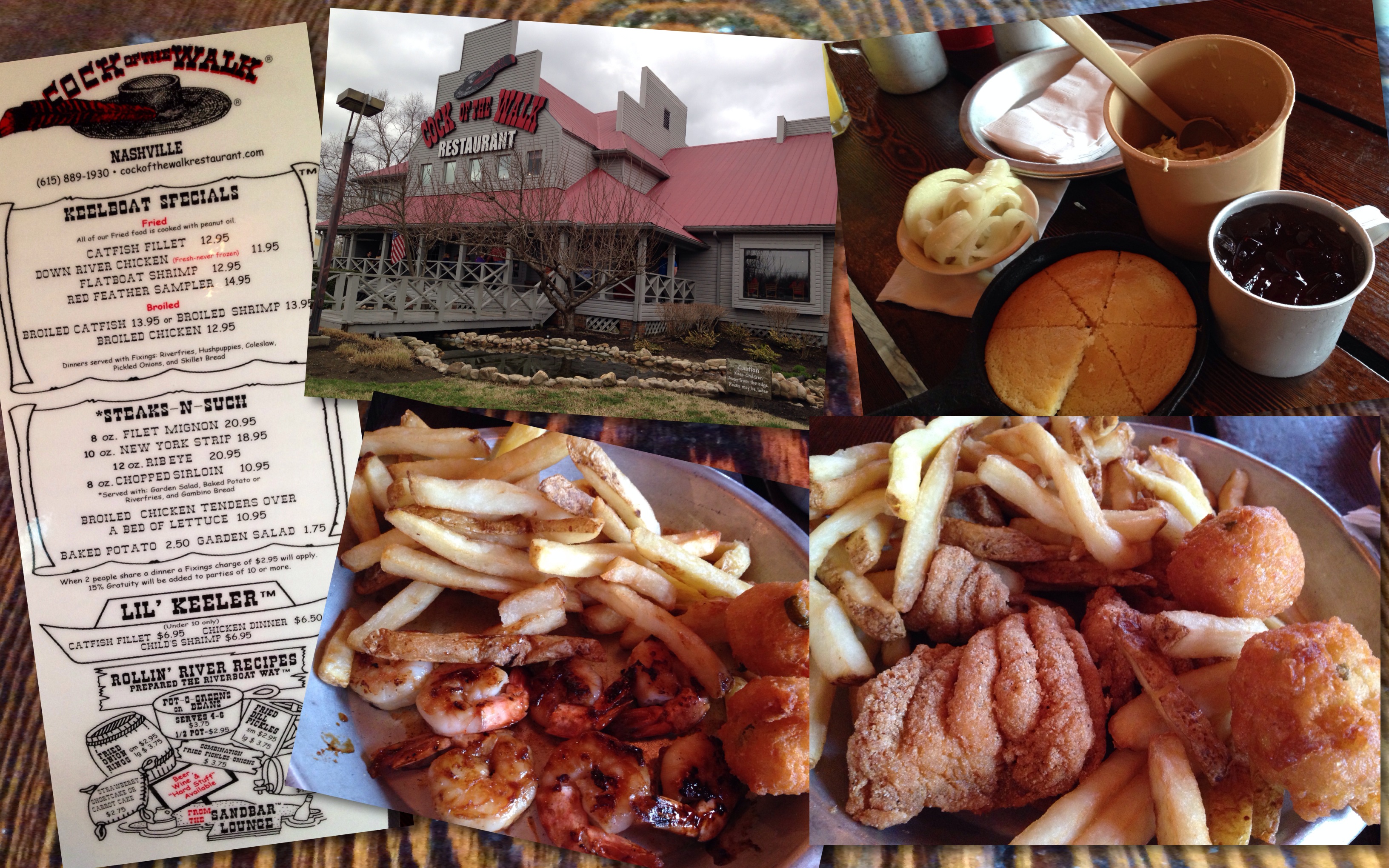 For great catfish, cornbread and sweet tea before a show at the Grand Ol’ Opry, I’d recommend Cock of the Walk. The atmosphere was quite interesting and the food was good and plentiful.