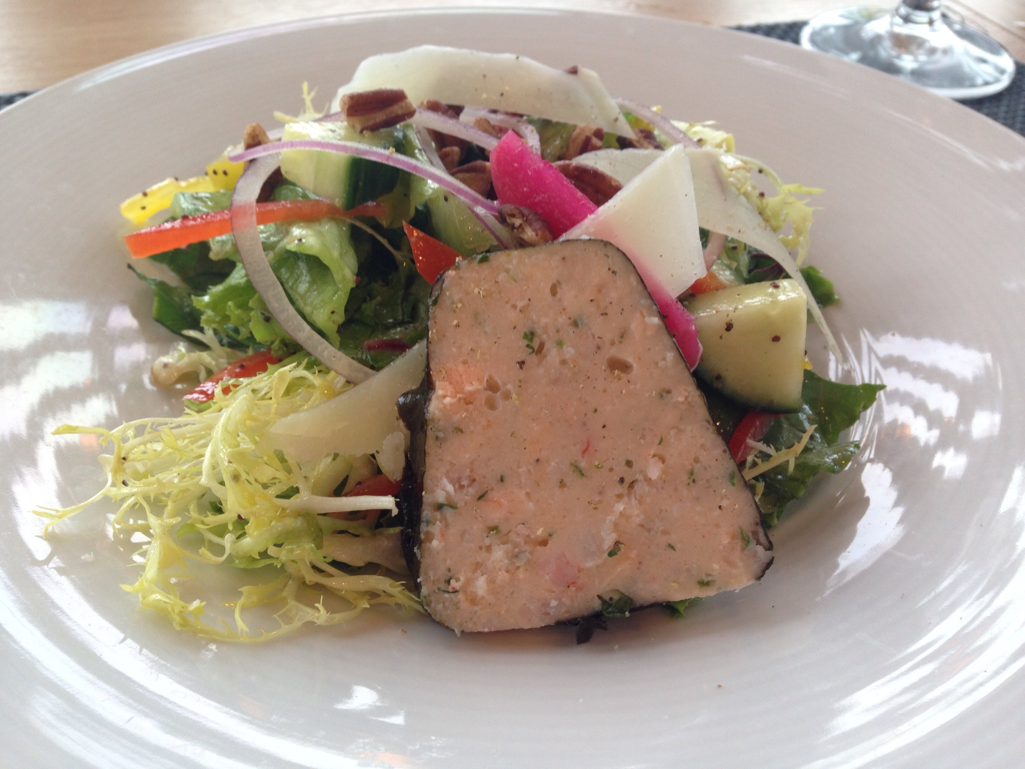 First up was a green salad with smoked salmon and scallop terrine. Excellent. Loved the light dressing.