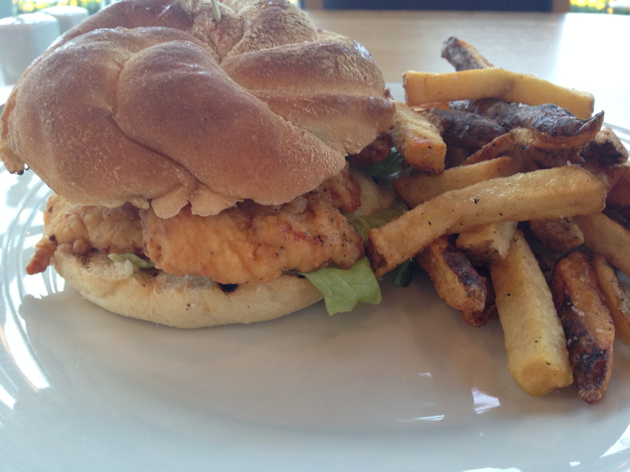 The main was a buttermilk chicken sandwich with homemade slightly crispy fries. Fries are amazing. I love that it comes out on a hot plate. What a great combo with the Dijon mustard, coleslaw and garlic aioli.