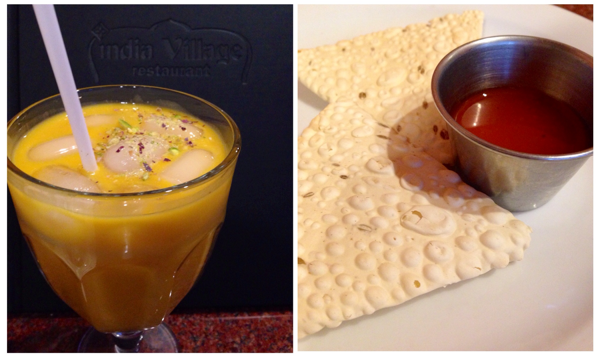 I started with their sweet and smooth Mango Lassis yogurt drink which cools the palate in between bites. I really enjoyed the little starter of crunchy Pappadum and sweet mango sauce.