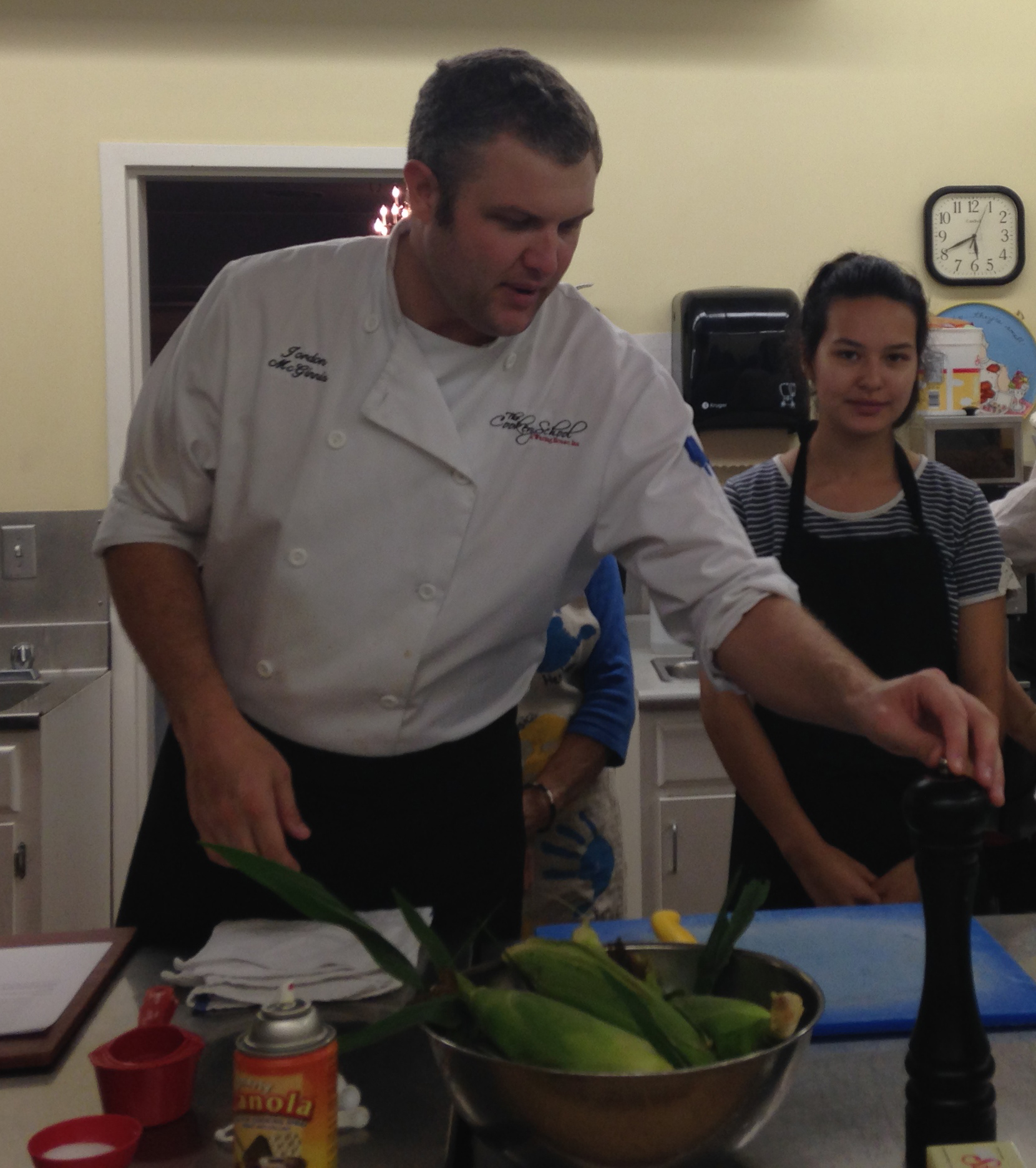 “Corn” was the theme for the evening’s cooking, and the menu was: