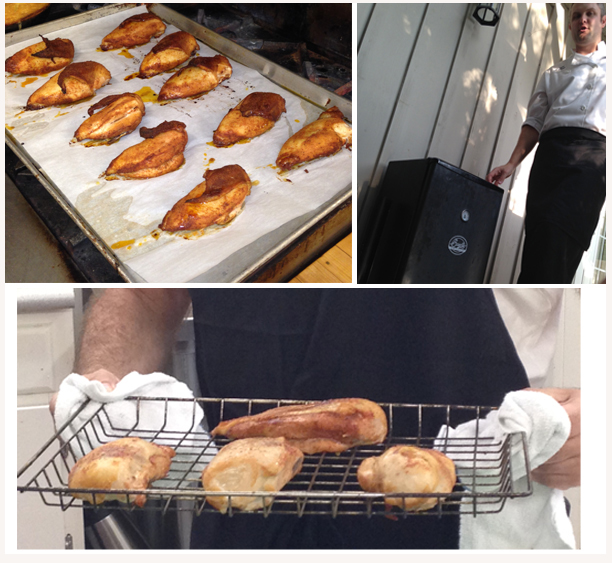 Our group worked on the Sweet Spicy Grilled Corn. The silks were removed, the leaves replaced with kitchen string, the corn was soaked, grilled, finished in the oven then covered in the sweet, spicy sauce. I can’t wait to make this easy recipe at home. It wasn’t really spicy, just the perfect balance to the sweetness.
