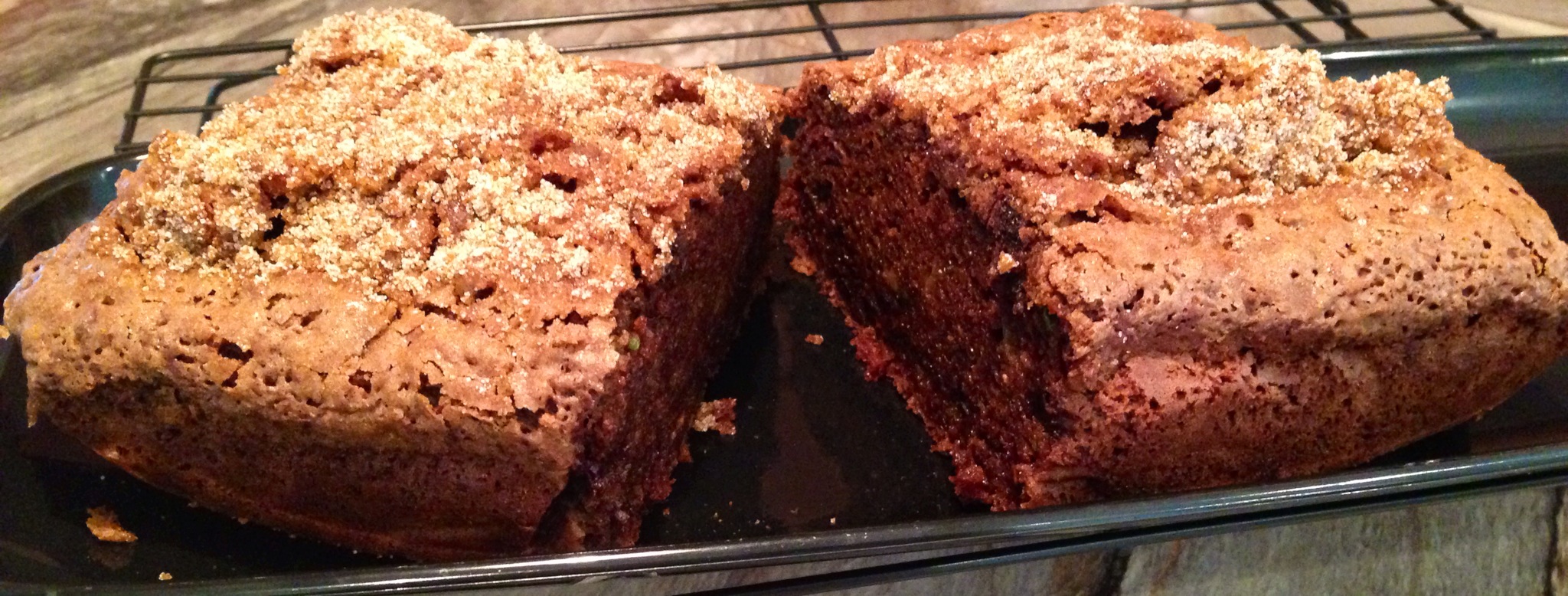 My mouth was watering the minute this Chocolate Zucchini bread came out of the oven, so moist with yummy crunchy bits on top.