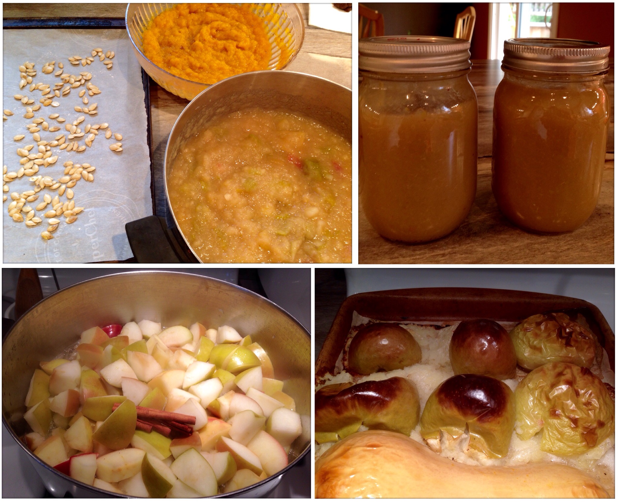 The smell of fall: homemade applesauce cooking on the stove, butternut squash baking in the oven, and roasting the seeds too!