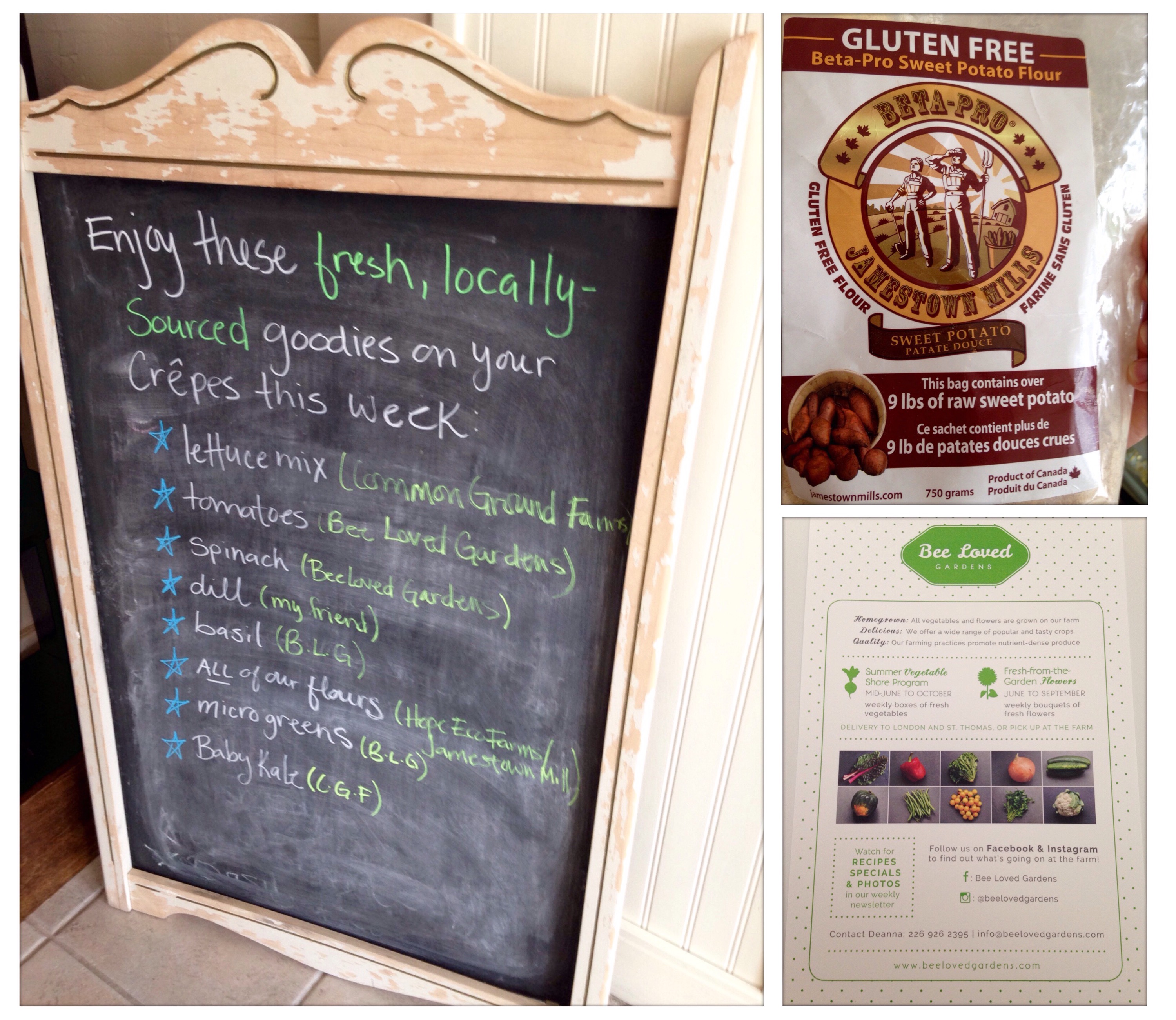 She started out at the St. Thomas Horton Farmers market. Then last November got her store front and already expanded in June! She uses locally sourced goodies, like their salsa is from Menno Mex, made seasonally and all the ingredients are locally sourced. Coffee is from the harbour merchant coffee company. Tea is from Wildflower’s Farm. She also sources from Bee Loved Gardens, Hope Eco Farms in Aylmer and gets sweet potatoe flour from Jamestown mills. And on top of it, everything is biodegradable: the cups, lids, utensils.