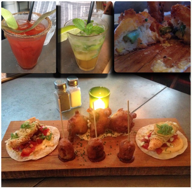 I’m so glad with our app choices and I loved their presentation on the wood board. Hands down the best vegetable fritters I’ve ever had… also I don’t know where else you could get this perfection. Not to say the corn dogs and perch tacos are any less, they are also stupid amazing!